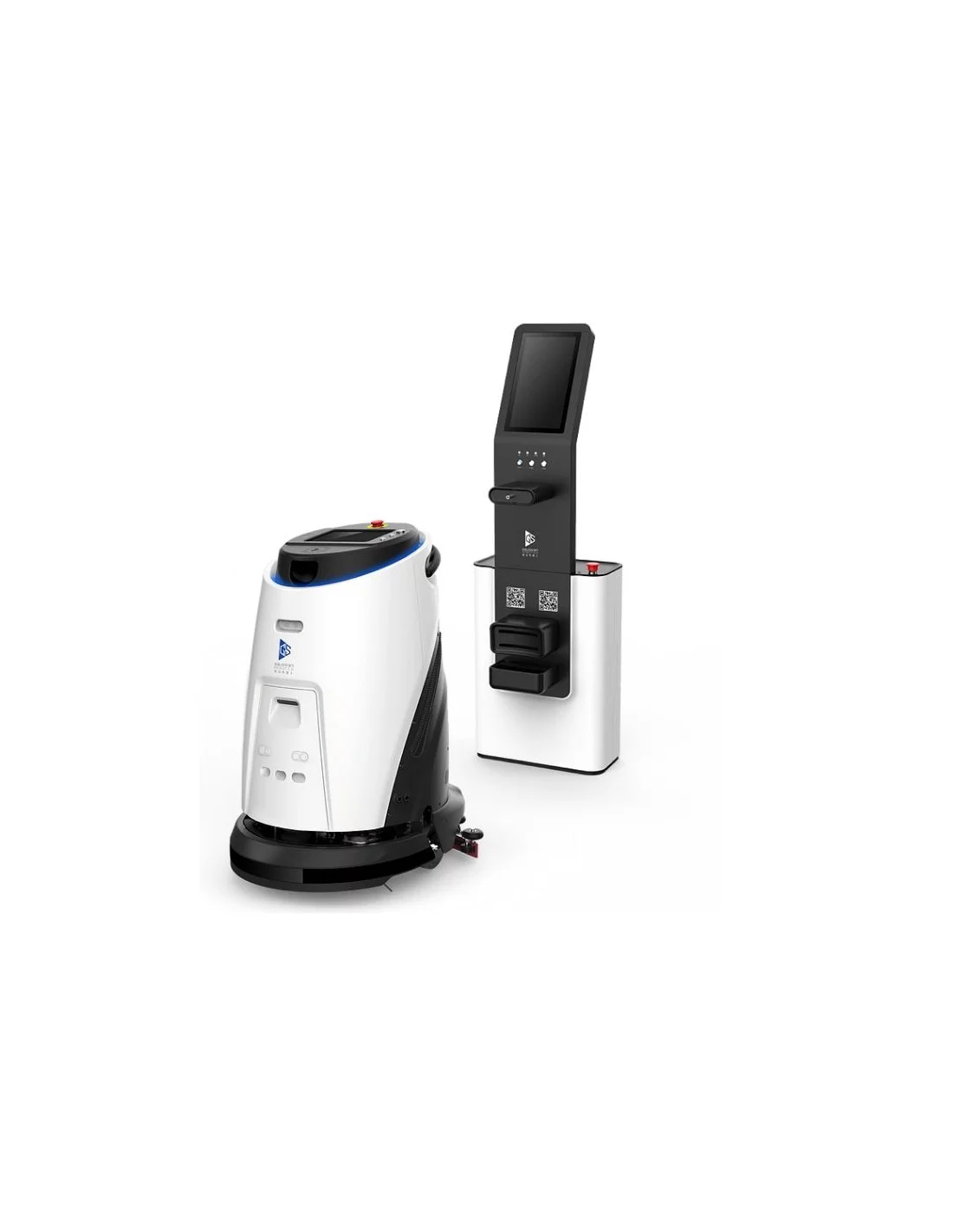 - La work-station dédiée : en option, le robot revient automatiquement à sa station de travail pour la recharge électrique, la vidange de l'eau sale et le remplissage de solution propre. Le robot intelligent assure ainsi le nettoyage optimal des sols en toute autonomie.