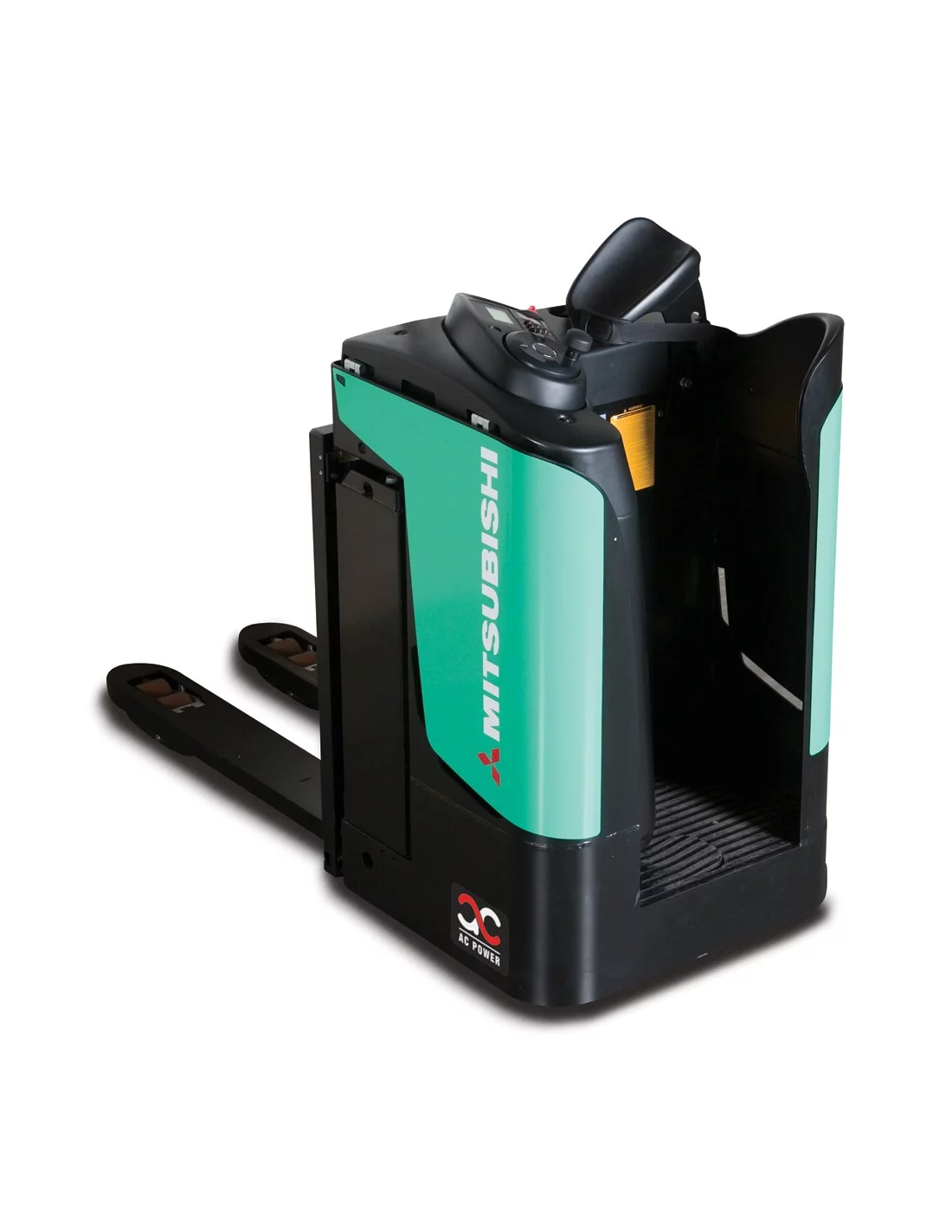 Machine compacte pour la protection du cariste et un encombrement minimal (500 mm de moins qu'un transpalette électrique à plateforme). Manipulation des palettes Euro et CHEP.
